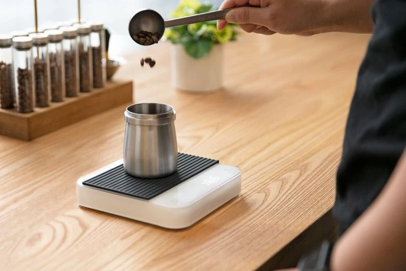 New Acaia Pearl 2021 Coffee Scale with built-in Flow-Rate Indicator, USB-C charging, and a brighter display for sunlight readability. The new Pearl stabilizes faster and more accurately during brewing.