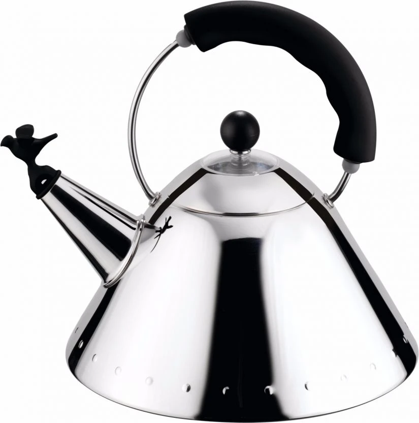 This celebrated kettle with the bird that sings when the water has boiled has been a great success since it was introduced in 1985. For Alessi it represents a meeting of great design and mass production methods, a combination that Michael Graves worked hard to achieve, applying his personal visual code which fused influences from Art Deco to Pop Art and even the language of cartoons.