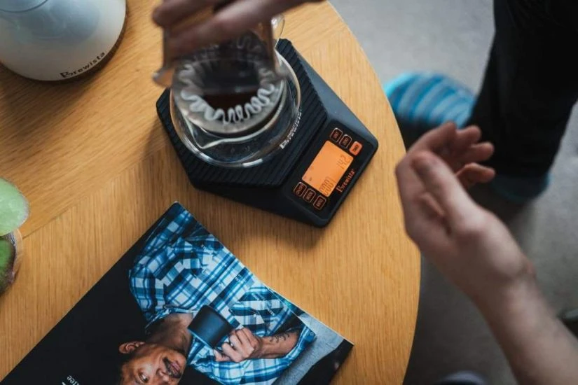 The Brewista Ratio Scale has a 0.1 g precision, and it weighs up to 2 kg. The scale contains a rechargeable battery, that is charged through a Micro USB socket (cable included).