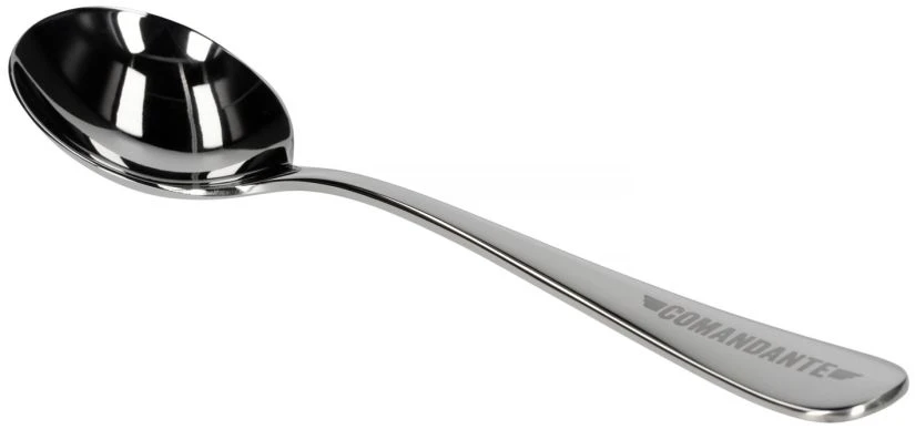 Stainless steel cupping spoon with Comandante logo engraved. Essential in every cafe and roastery – where coffee needs to be tasted.