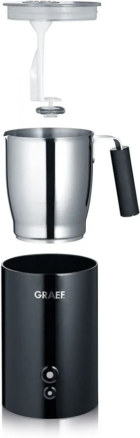 The Graef MS 701 electric milk frother produces the finest, creamy milk froth in barista quality for cappuccinos and caffé latte. The frother comes with a removable milk jug made of stainless steel, suitable for dishwashers. Using the milk frother, you can also prepare, warm milk, hot chocolate (either cold or warm) as well as instant drinks.