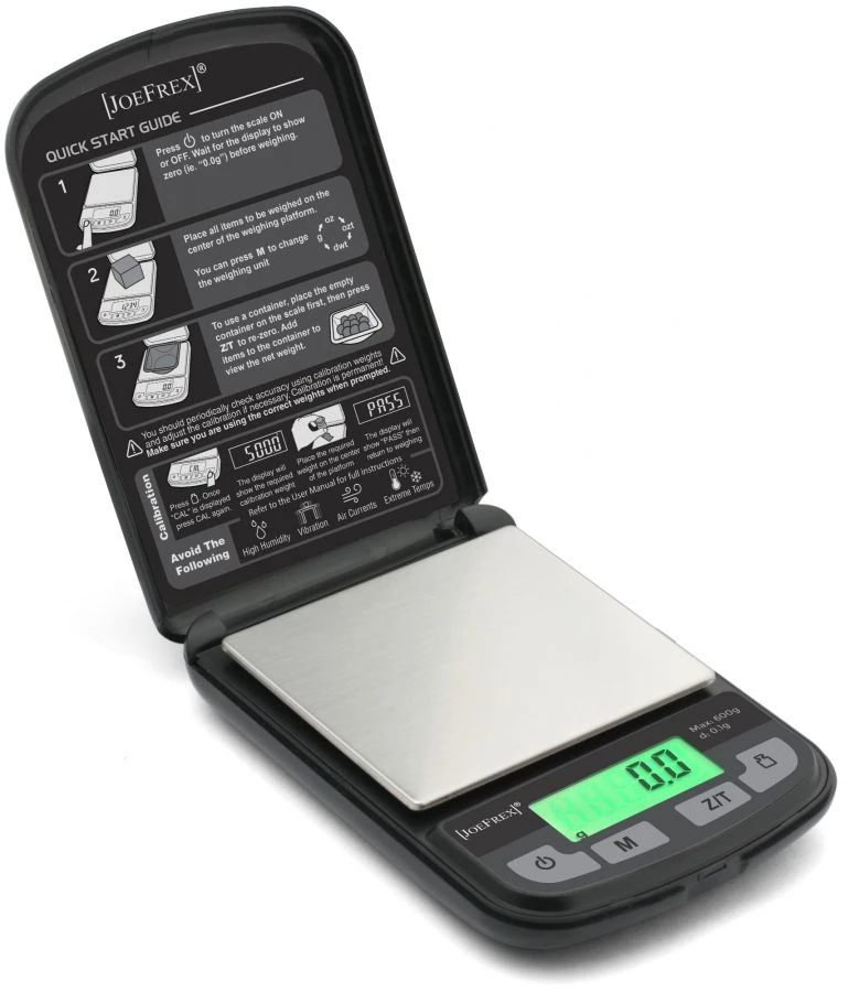 The JoeFrex Digital Espresso Scale comes with a tare function, a blue display light and batteries included. Use the scale for example for measuring your espresso shot. Accuracy 0,1 grams, max. weight 800 g.