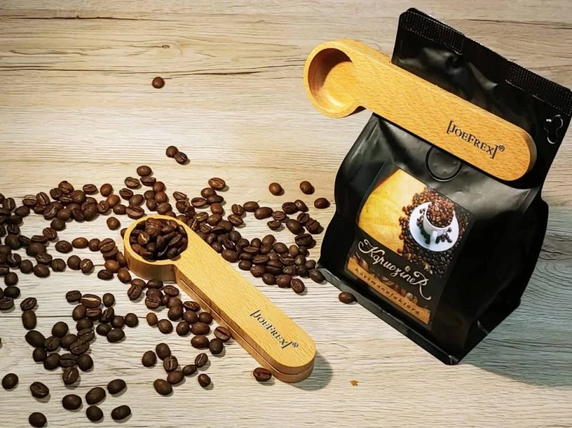 The JoeFrex bag clip / coffee measure securely seals the coffee bag so that oxygen exchange is prevented and the coffee remains fresh.