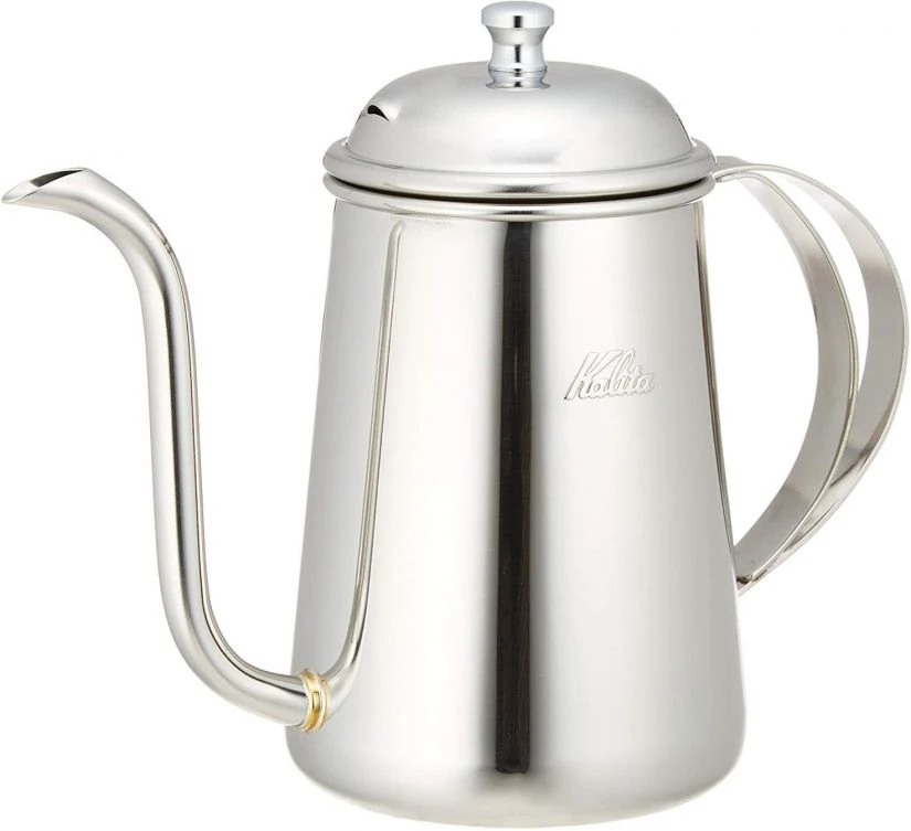 Kalita Stainless Steel Thin Spout Pot is a stainless steel water kettle for pour over coffee. The Gooseneck spout restricts the flow of water, giving you complete control over the speed and accuracy of the pouring. The handle is designed to minimize strain on your hand, even when the kettle is full.