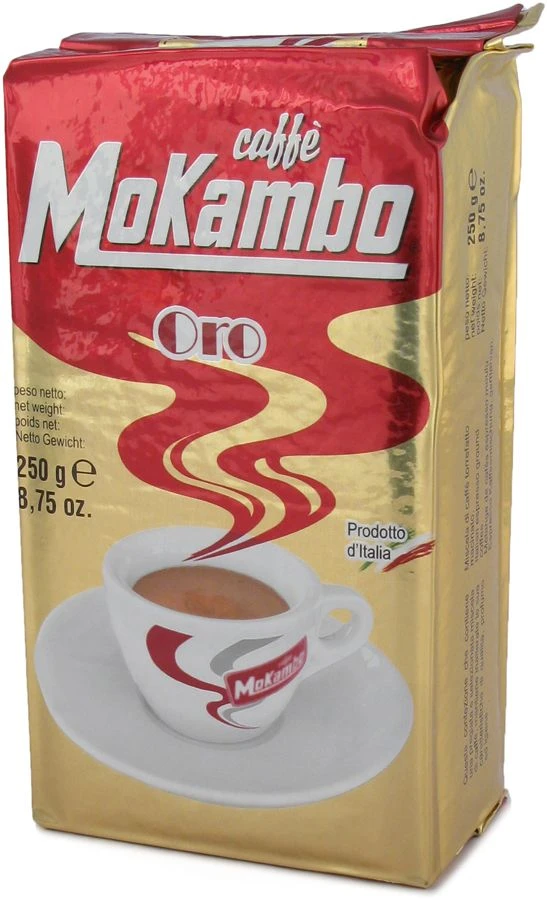 Caffé Mokambo Oro is a full-bodied and smooth Italian coffee blend with a touch of Robusta (10 %) and 90 % Arabica coffees. A delicate espresso!