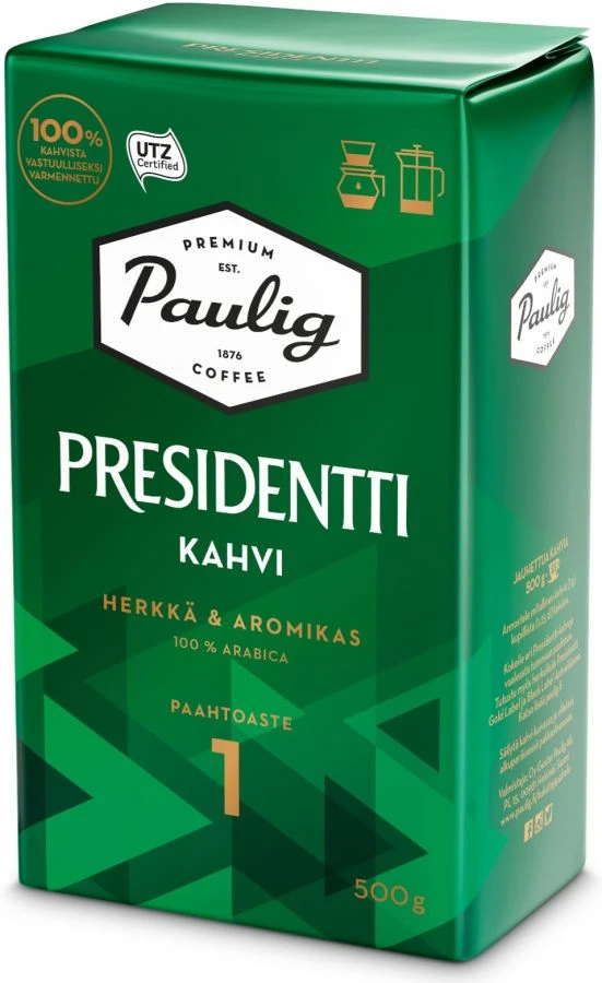 Paulig Presidentti is a Finnish true classic coffee since 1929. Its flavor highlights high-quality Arabica coffee beans from Central America, Kenya and Ethiopia.