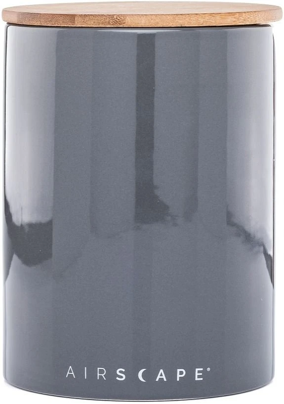 The original Planetary Design Airscape Ceramic coffee & food storage canister with a patented plunger lid removes and locks out air and humidity creating airless food storage; extends the life of coffee, tea, flour, sugar, cereal, cookies, seeds, herbs, nuts, pet food or any perishable goods.